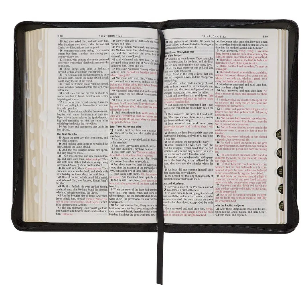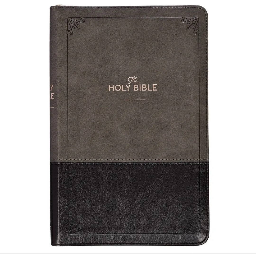 KJV GRAY/BLACK DELUXE BIBLE W/ ZIPPER CASE, RIBBON MARKER, THUMB INDEX, FLEXCOVER, LAY FLAT SPINE, WORDS OF CHRIST IN RED, VERSE FINDER, ONE YEAR READING PLAN, COLOR MAPS, 9 PT FONT, 9.1" X 6" X .1"