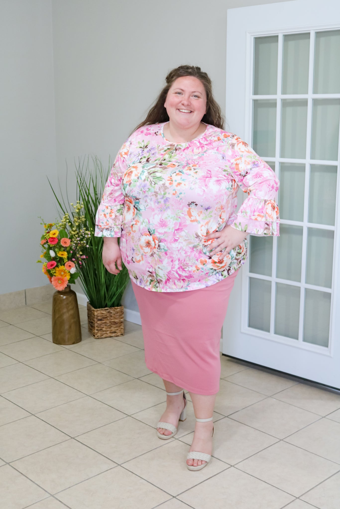 PINK FLORAL LAYERING TOP, 3/4 SLEEVES