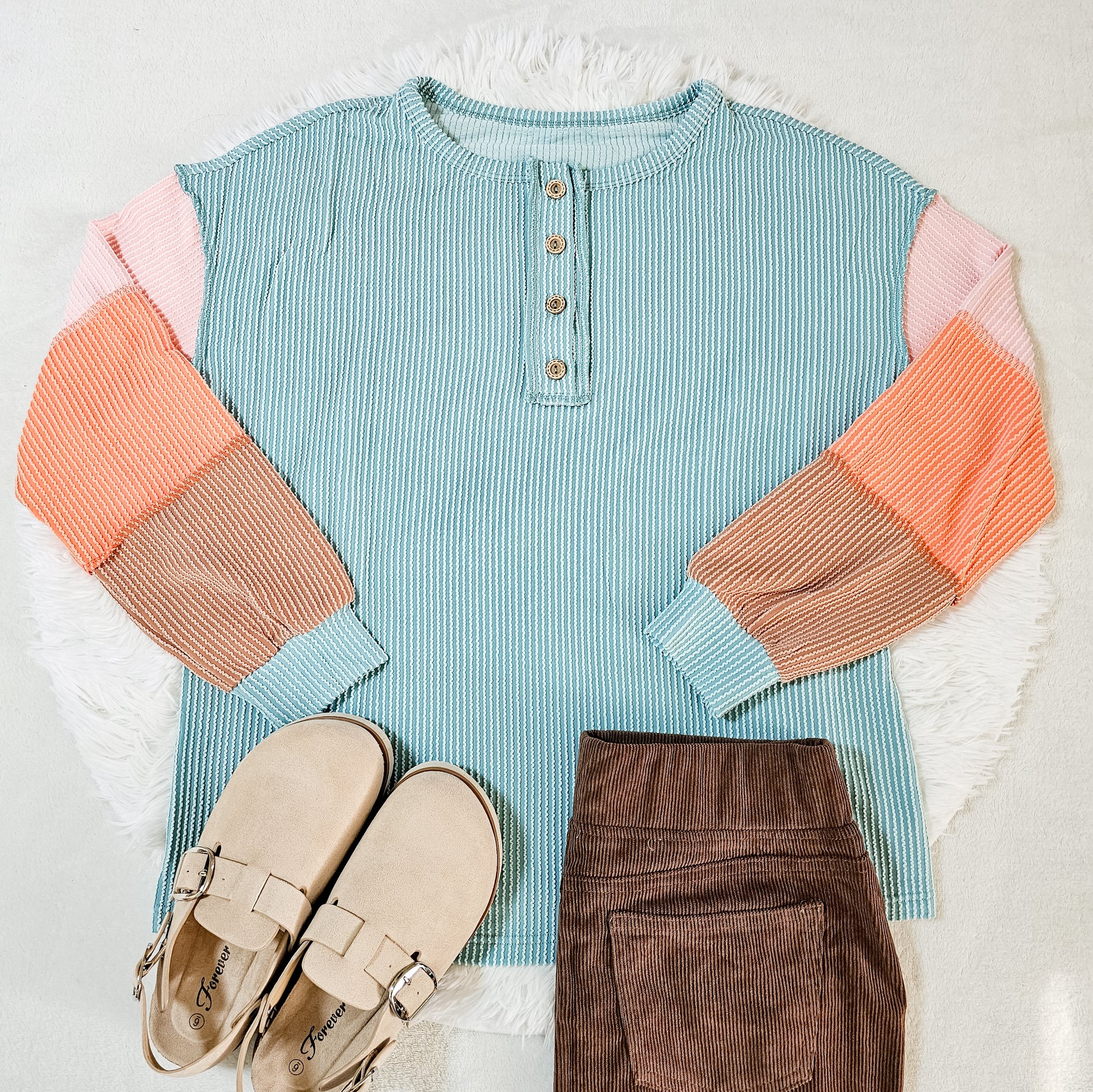 RIBBED KNIT COLORBLOCK TOP, BUBBLE SLEEVE